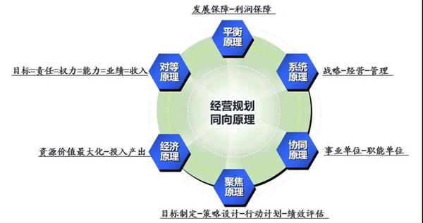 企業(yè)的有效運(yùn)作應(yīng)當(dāng)遵循“戰(zhàn)略一經(jīng)營一管理”三位一體運(yùn)行的規(guī)律。戰(zhàn)略著眼于長(zhǎng)遠(yuǎn)規(guī)劃,指明企業(yè)前進(jìn)的方向;管理側(cè)重日常運(yùn)營,確保企業(yè)運(yùn)作的效率;而年度經(jīng)營計(jì)劃則是對(duì)上承接方向,對(duì)下保障效率,達(dá)成戰(zhàn)略和管理的結(jié)果。綜合分析年度經(jīng)營計(jì)劃在企業(yè)管理中的地位和作用,我們認(rèn)為,科學(xué)的年度經(jīng)營計(jì)劃應(yīng)當(dāng)符合六大基本原則,方能將經(jīng)營的各方面要素統(tǒng)合籌劃,實(shí)現(xiàn)同向發(fā)展。